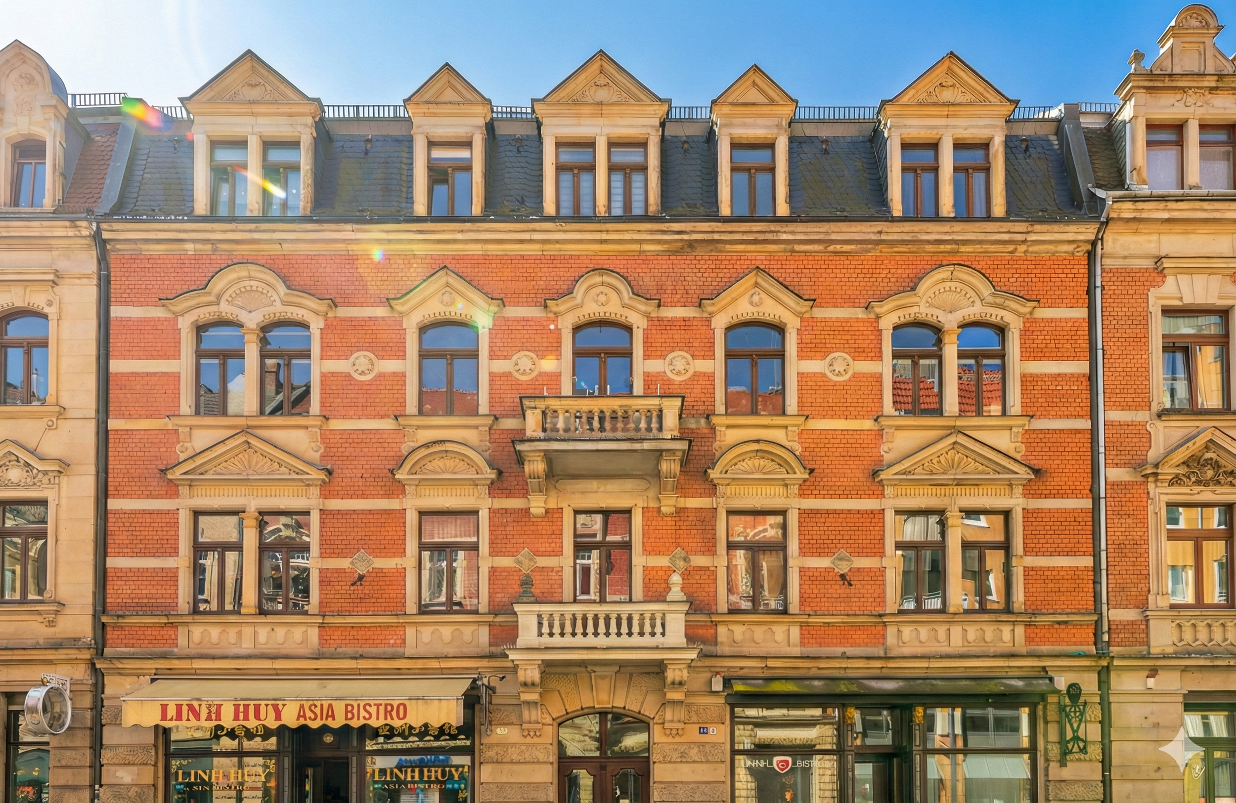 Diese sehr attraktive 2-Raum-Dachgeschosswohnung befindet sich in einem hochwertig kernsanierten, denkmalgeschützten Altbau aus der Gründerzeit im Herzen der Pirnaer Altstadt. Das gepflegte Mehrfamilienhaus überzeugt mit einer stilvollen Klinkerfassade, restaurierten Sandsteinelementen und historischem Charme.